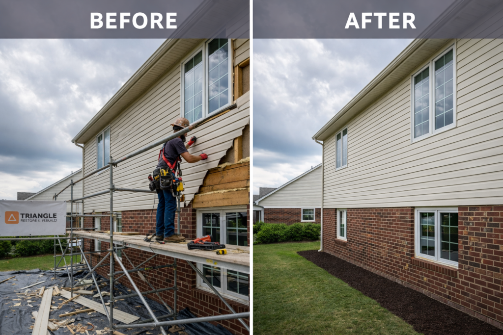Storm and wind damage repair following severe weather in Pittsboro, NC.